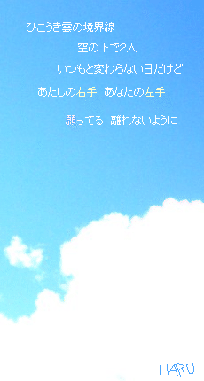 ⌒⌒⌒⌒⌒⌒⌒⌒⌒⌒⌒⌒ ただいま受験生の遥です はるって読みま-す(^^) よろしくだ!!\(^^)/ ちなみに愛知県豊田市 の田舎のほうに住んで ますよ★ミ゜・ ========== 更新は亀より遅いです きまぐれなのです(^^) よろしくおねがい!! ⌒⌒⌒⌒⌒⌒⌒⌒⌒⌒⌒⌒